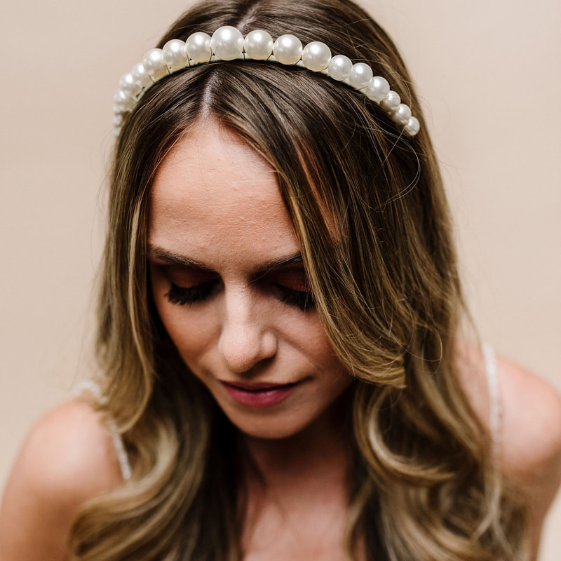 A simple graduated pearl headband which looks great with loose waves or a slicked back ponytail.