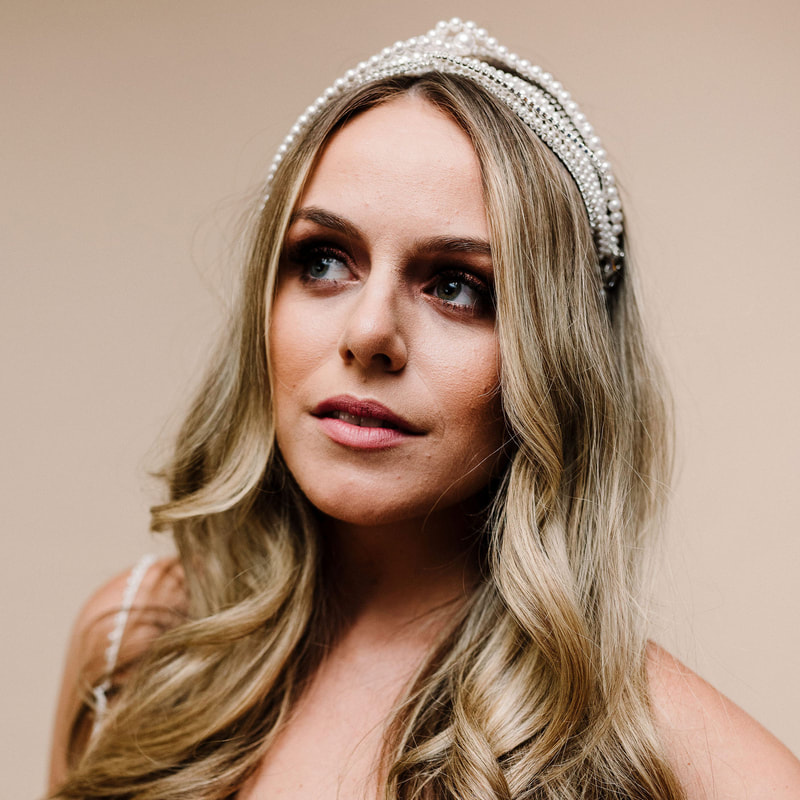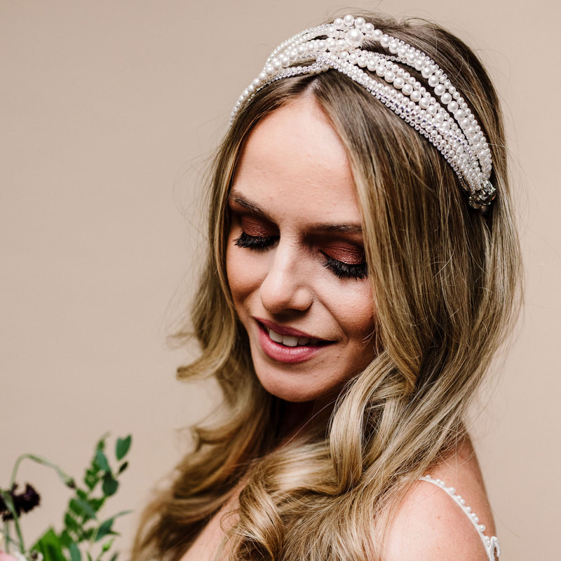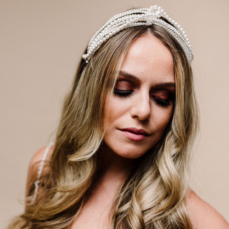 Multi strand pearl and diamante headband for the relaxed modern bride.