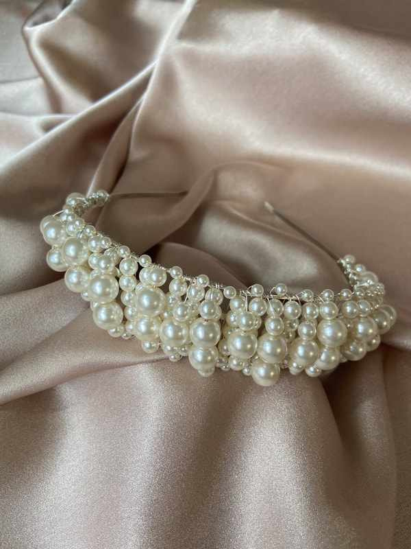 The multi sized pearls give this statement piece a modern feel that would work great with a 60's or 70's feel dress and can also be worn again and again after your big day.