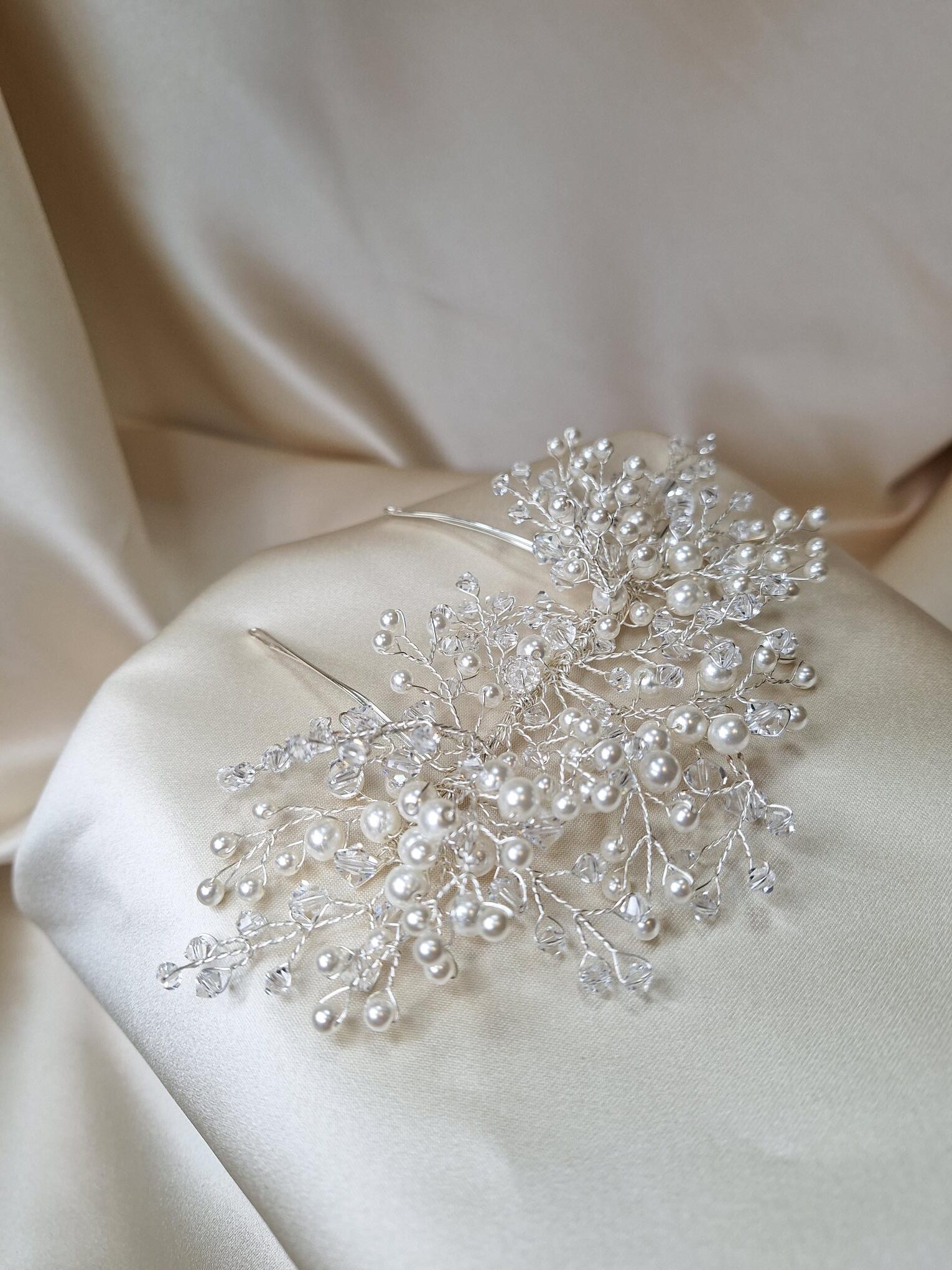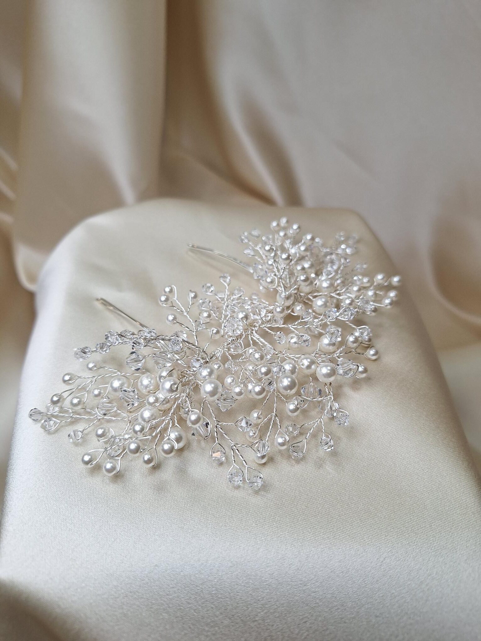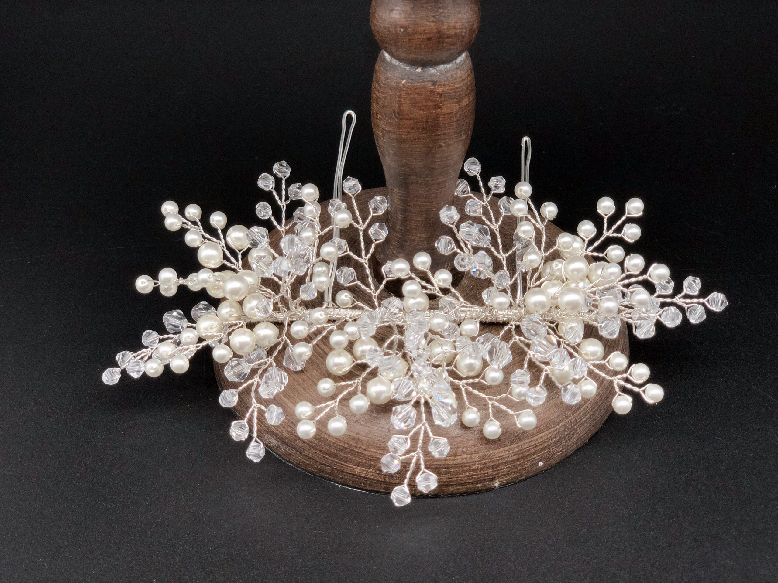 Think you can’t wear a veil & hair accessory? Think again! This beautiful veil comb with layers of small seed pearl sprigs have been hand-wired onto a silver veil comb